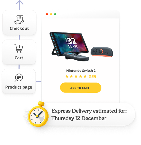 Display a reliable delivery date right from the product page to boost conversion, and reduce support tickets with a real-time updated ETA on the tracking page.