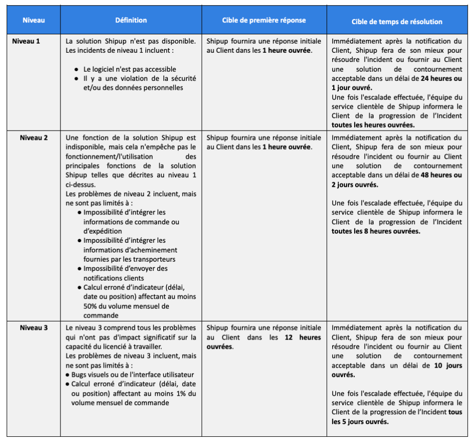 Shipup is committed to providing the Services with all the care and diligence of a professional. Thus, Shipup provides the Associated Services as defined in the Subscription Form, and undertakes to respect the service levels provided for in the SLA with respect to the Application Service, if applicable.
