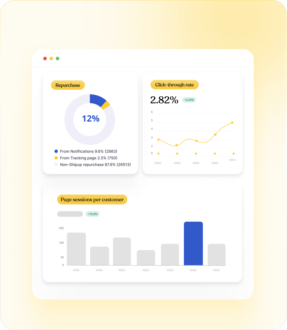 Yes. Shipup gives you access to detailed analytics: campaign click rates, visits by source (notifications, emails, etc.), carrier performance, etc. So you can measure the real impact of your tracking page.