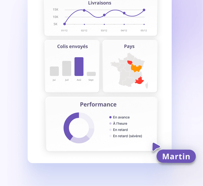 Suivez la performance de vos transporteurs, maîtrisez vos délais et améliorez la qualité de service grâce à un pilotage des livraisons par les données.