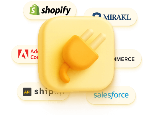 Shopify, PrestaShop, Magento, Salesforce Commerce Cloud… Nos connecteurs natifs offrent une intégration rapide et sans contraintes techniques. Une API est également disponible.