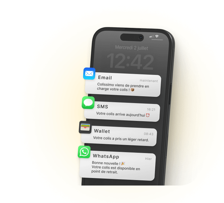 Email, SMS, WhatsApp, Apple Wallet : transformez chaque notification de livraison en opportunité de satisfaction, de réassurance et de réachat.