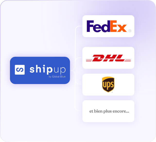 Shipup propose plus de 1000 intégrations natives avec des transporteurs internationaux, régionaux et spécialisés. Cela inclut les leaders comme DHL, Colissimo, Chronopost, UPS, FedEx, GLS, Mondial Relay, La Poste, Relais Colis, DPD, et bien d'autres. Nous couvrons à la fois les livraisons à domicile, en point relais et les modèles hybrides.
