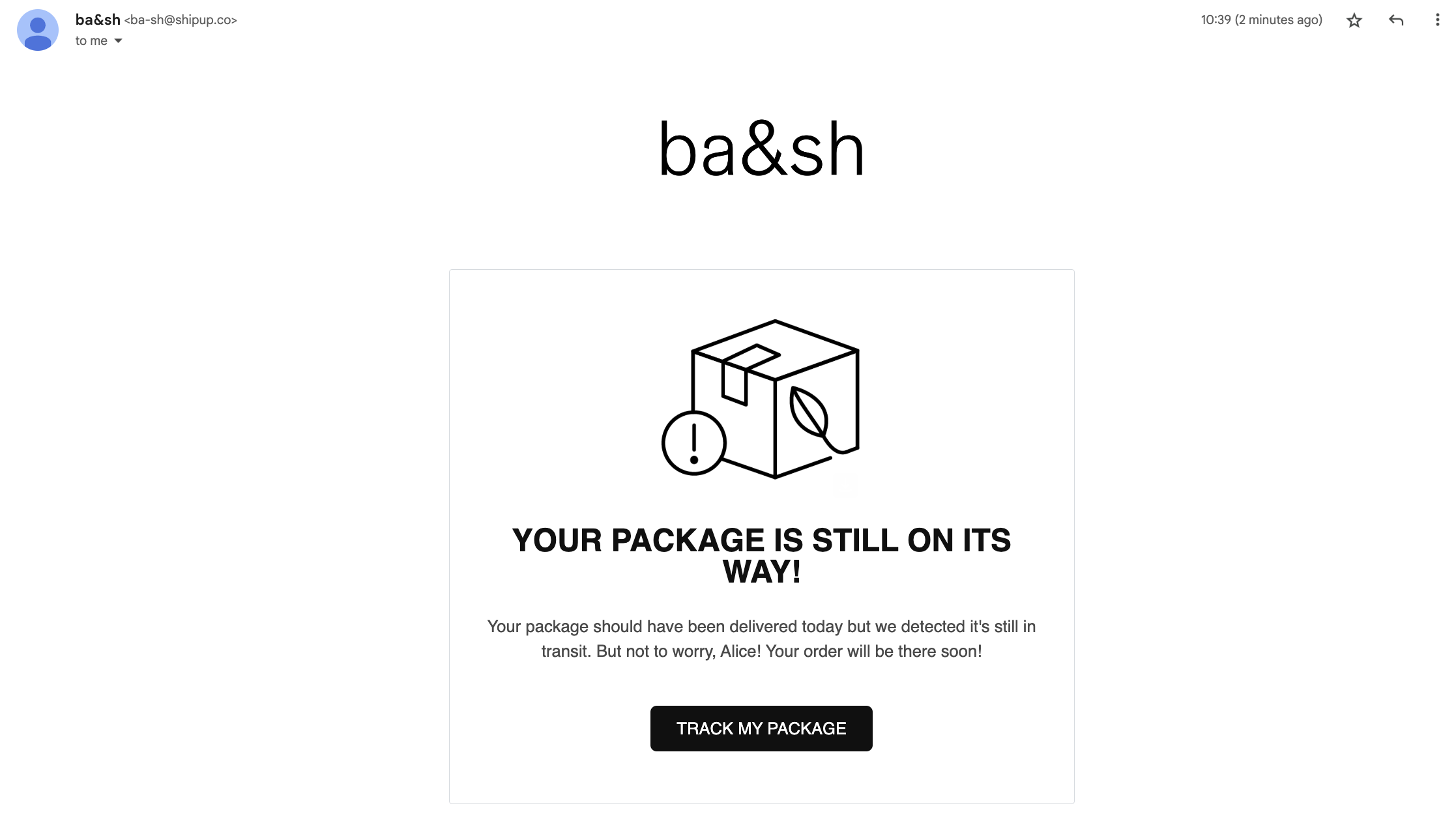 L'attente d'un colis peut être une expérience stressante. ba&sh a voulu rassurer ses clients au sujet de leur colis, qu'il s'agisse d'un cadeau spécial pour un être cher ou d'un simple achat pour soi-même.
